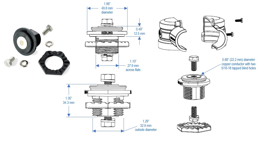 Our 1,000 amp BFT-style terminal (without mounting ears) consists of a nickel-plated copper core, which stays cool at 1,000 amps of continuous current or when charge and discharge currents hit short term peaks of 5,000 amps. These small footprint terminals are designed for the temperature-sensitive environment of lithium battery cells and the charging rates of ultracapacitors and supercapacitors. Equipping your power module with these watertight, single-pole, wrench disconnect, copper battery terminals will facilitate the incorporation of your modules into cutting edge EV, APU, Fuel Cell, and Weapons Systems.