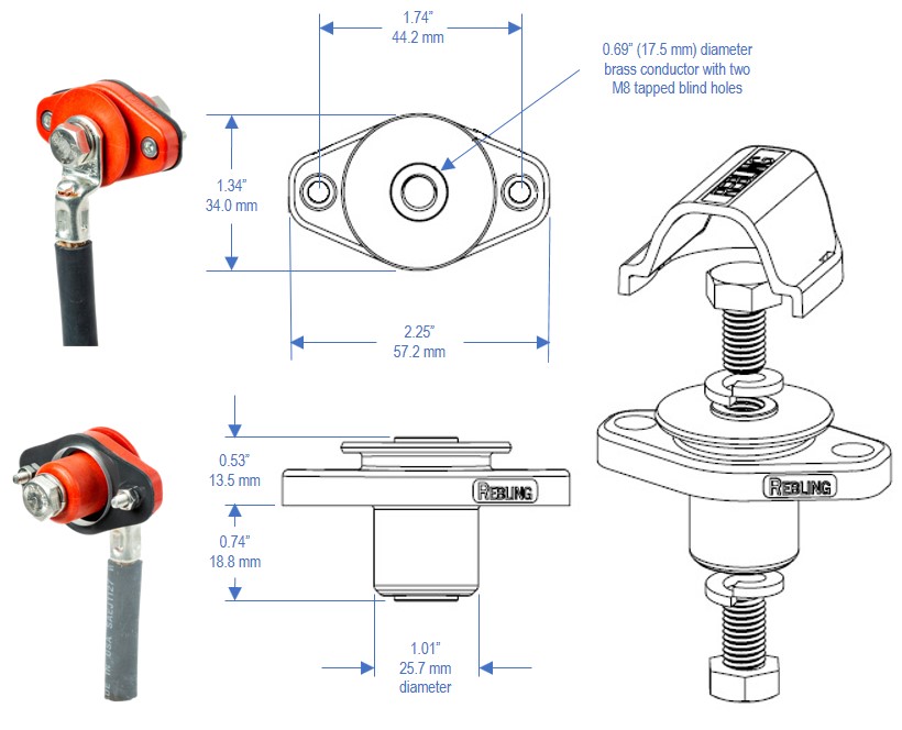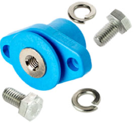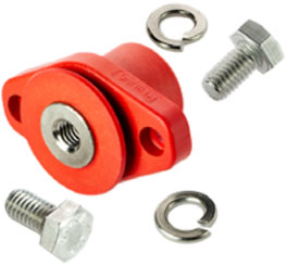 Our MFT-style terminal (with mounting ears) provides 500 amp continuous current performance, the ability to be mounted to panels of any material or thickness, and retains the same 2,000 volt rating, IP68 sealing capability, and nickel plating as the lower power members of our battery terminal family. The MFT can accept the same snap-on rigid or flexible covers as our LFT and SFT-style terminals. Equipping your design with these watertight, single pole, wrench disconnect, battery terminals will enable system integrators to easily incorporate your modules into the MicroGrid, Reserve Power, Vehicle Electrification, or APU systems the end-user requires, regardless of battery chemistry.