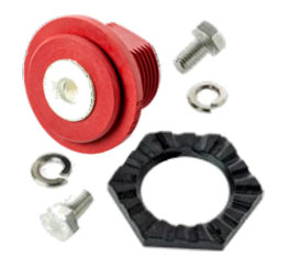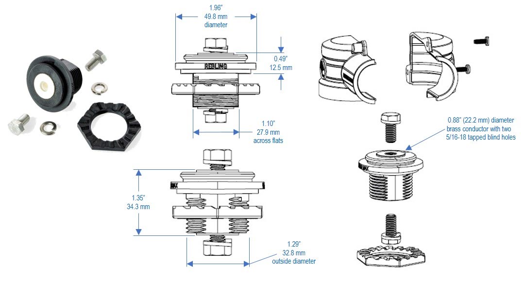 Our 750 amp BFT-style terminal (without mounting ears) consists of a nickel-plated brass core which stays cool at 750 amps of continuous current or when charge and discharge currents hit short term peaks of 4,000 amps. These small footprint terminals are designed for the temperature-sensitive environment of lithium battery cells and the charging rates of ultracapacitors and supercapacitors. Equipping your power module with these watertight, single-pole, wrench disconnect, brass battery terminals will facilitate the incorporation of your modules into cutting edge GenSet, APU or Vehicle Electrification systems